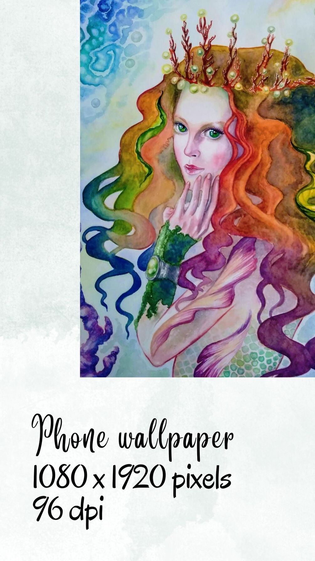 This is what you'll get: a jpeg file, 96 dpi, 1080 x 1920 pixels, depicting the marvellous Crystal, queen of the Abyss. From an original watercolor by Fabiola Bonghi